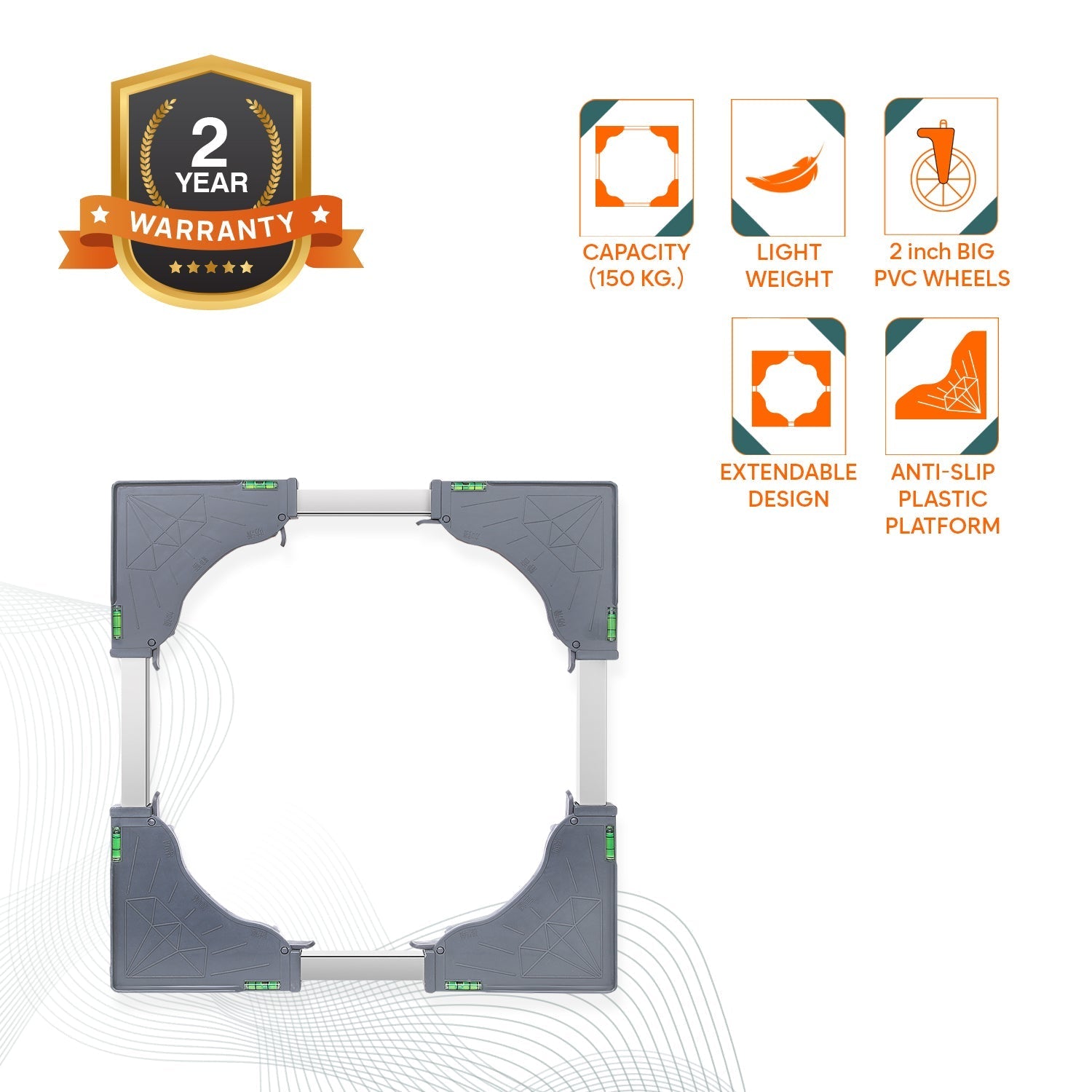 Keep your washing machine, refrigerator, or heavy appliances stable and easy to move with this 150 KG Heavy Duty Stainless Steel Modern Washer Stand. Designed to support up to 150 kg, this stand is made with durable stainless steel and features an adjustable base to fit different appliance sizes.