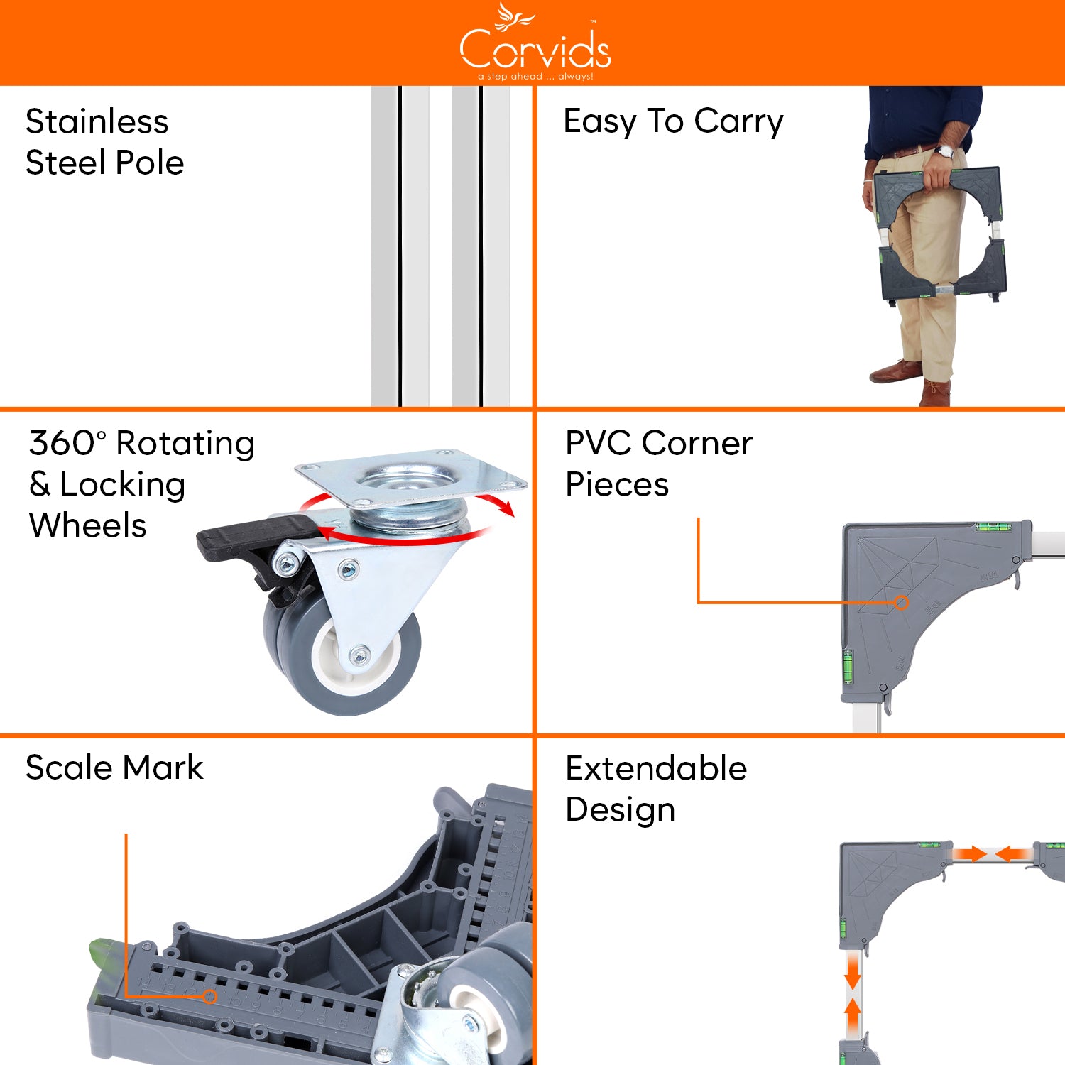 ✅ Heavy-duty stainless steel frame – supports up to 150 kg