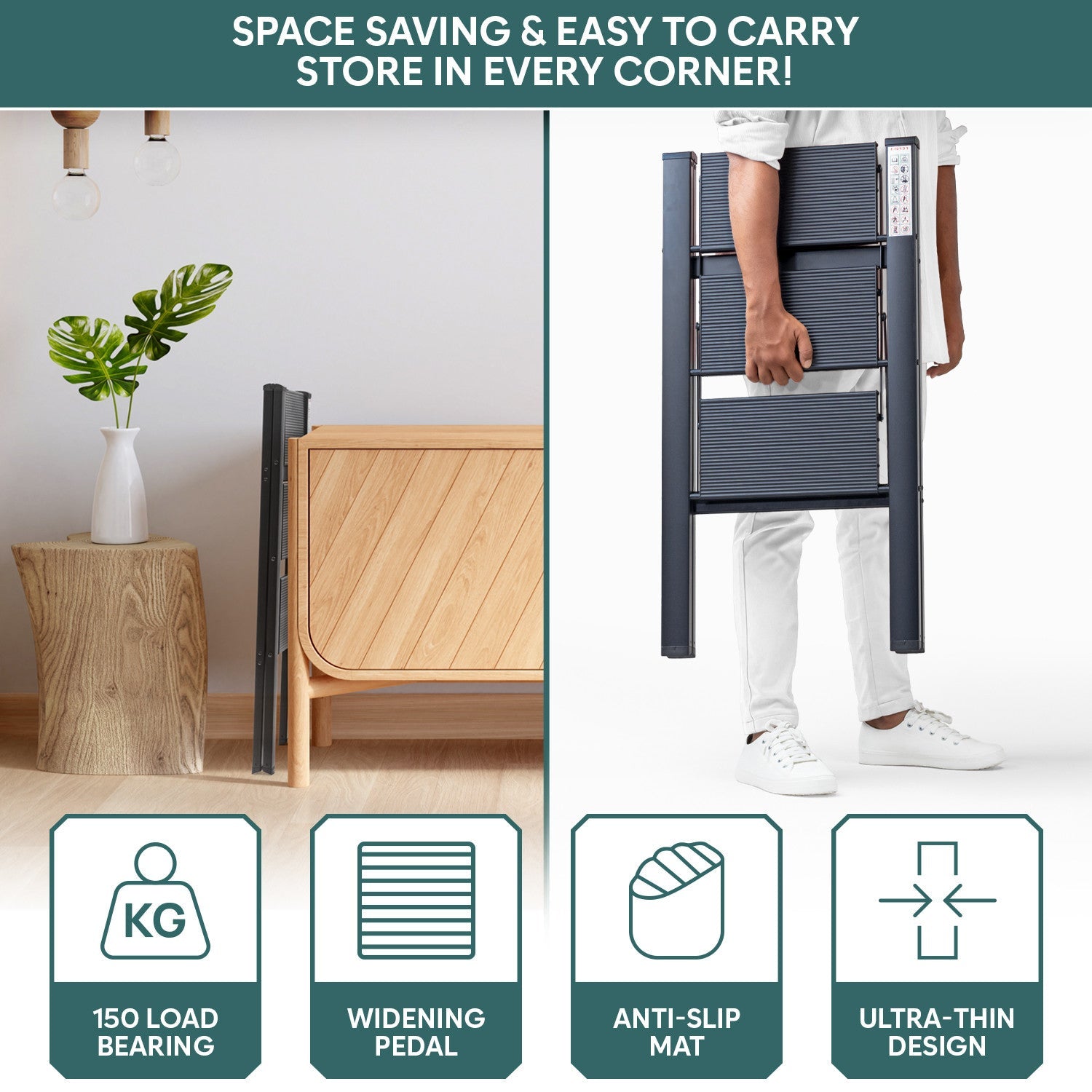 ✅ Wide anti-slip steps for safe and comfortable climbing
