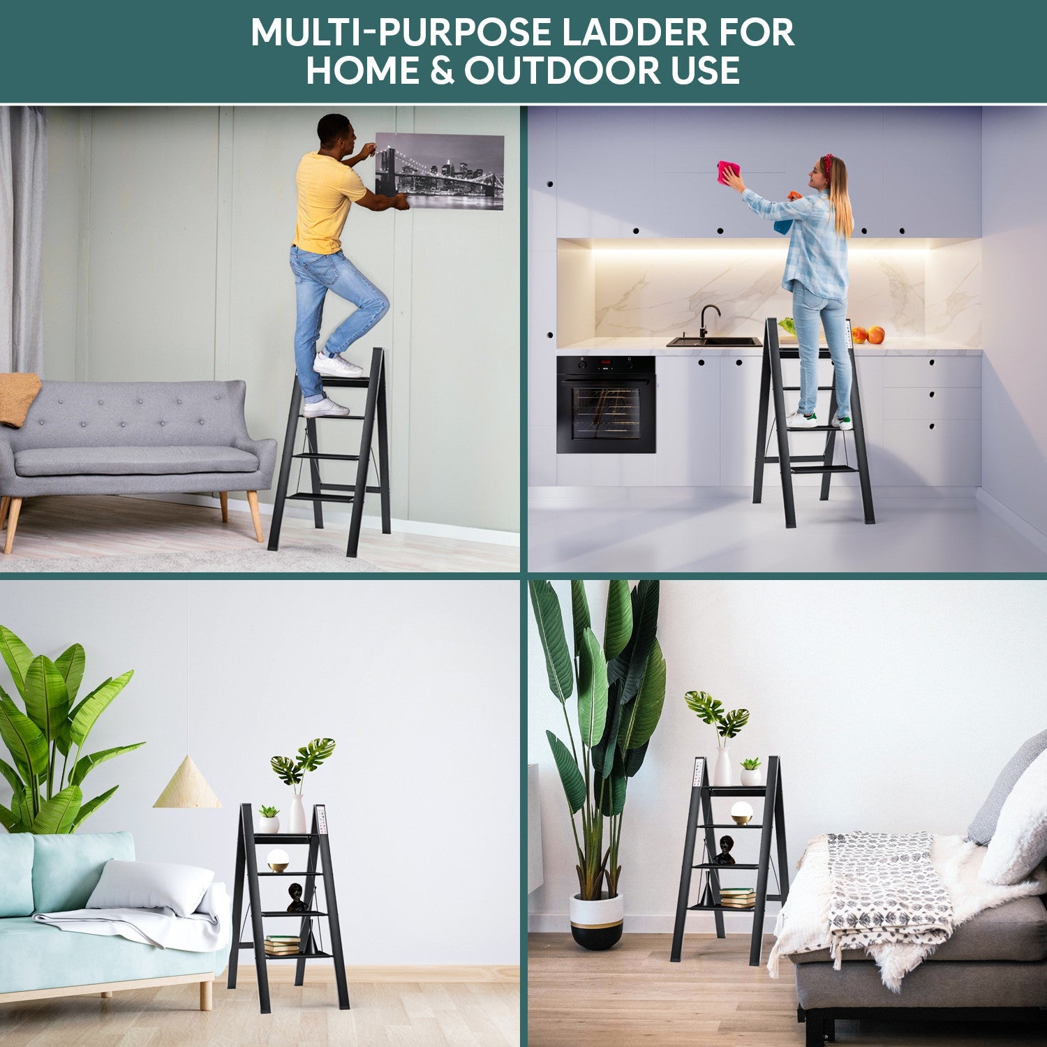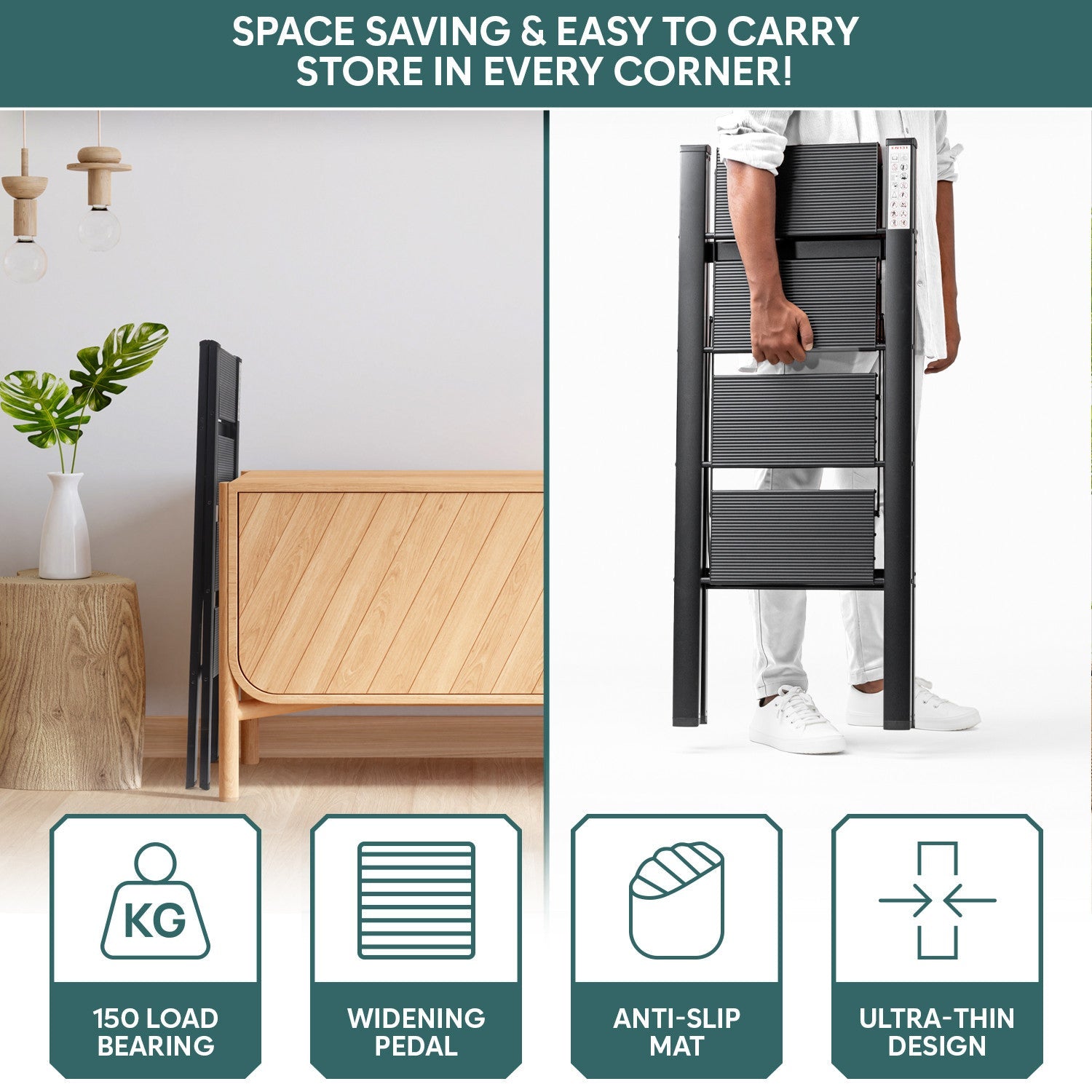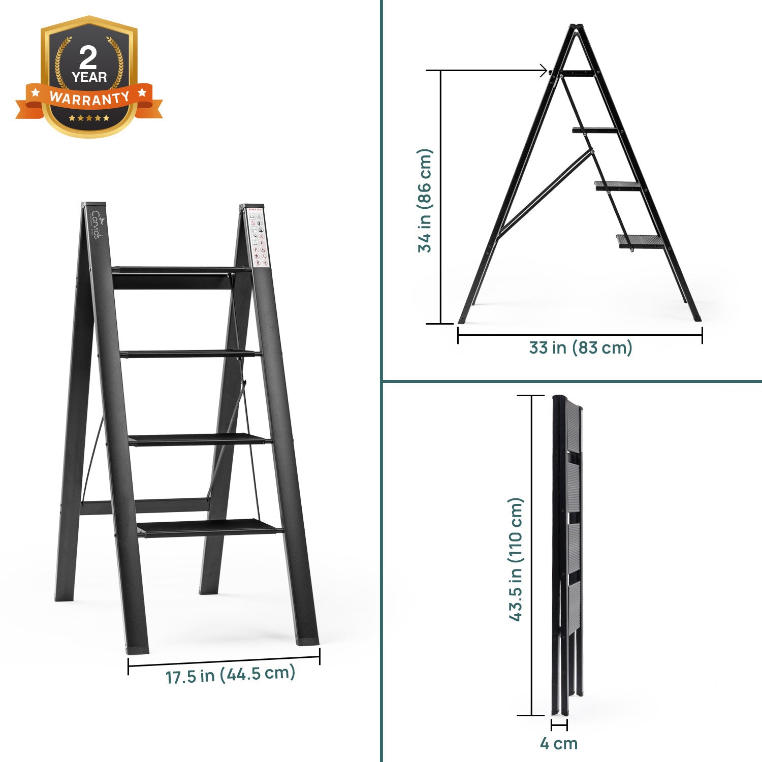 4-Steps Premium Folding Step Stool with 2-Year Warranty (Black)