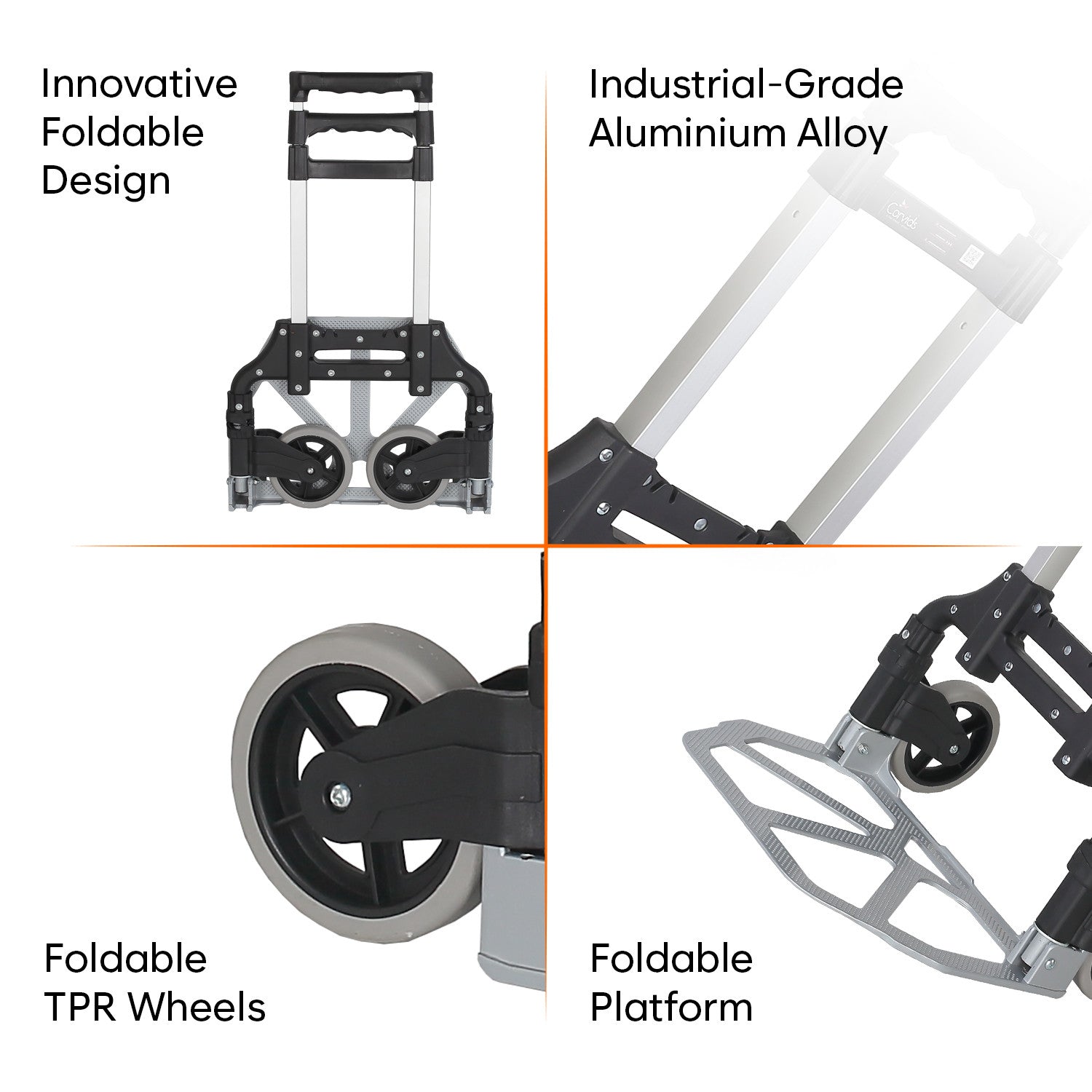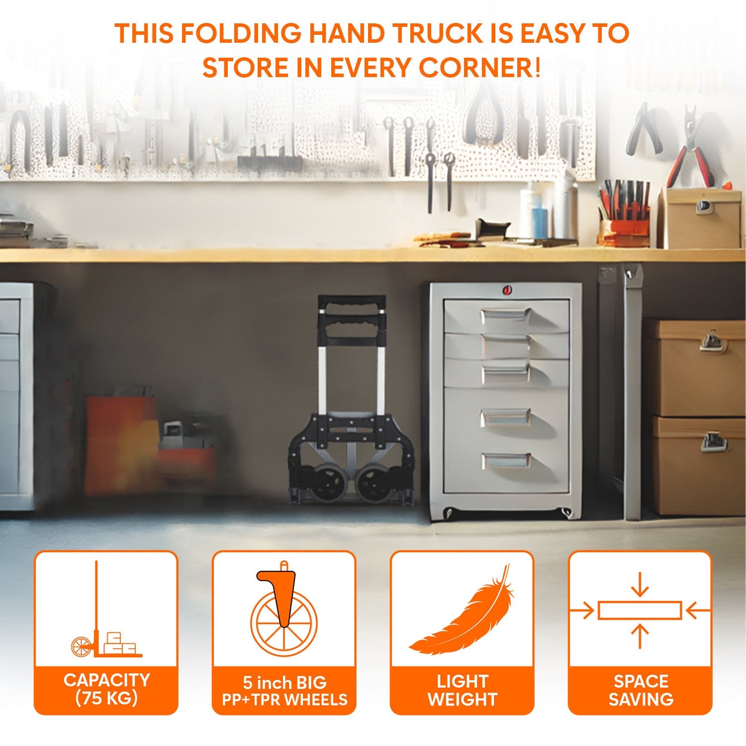 75 Kg Portable Aluminium Hand Truck | Lightweight & Foldable Trolley | Heavy-Duty Compact Dolly Cart for Home, Office & Warehouse Use