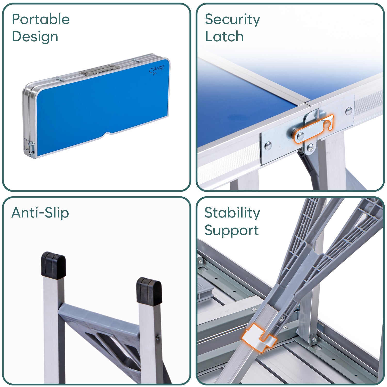 Folding All-in-One Aluminium Table & Chair Combo | Compact & Foldable Set for Camping, Picnic, Garden, Outdoor & Indoor Use (Blue)