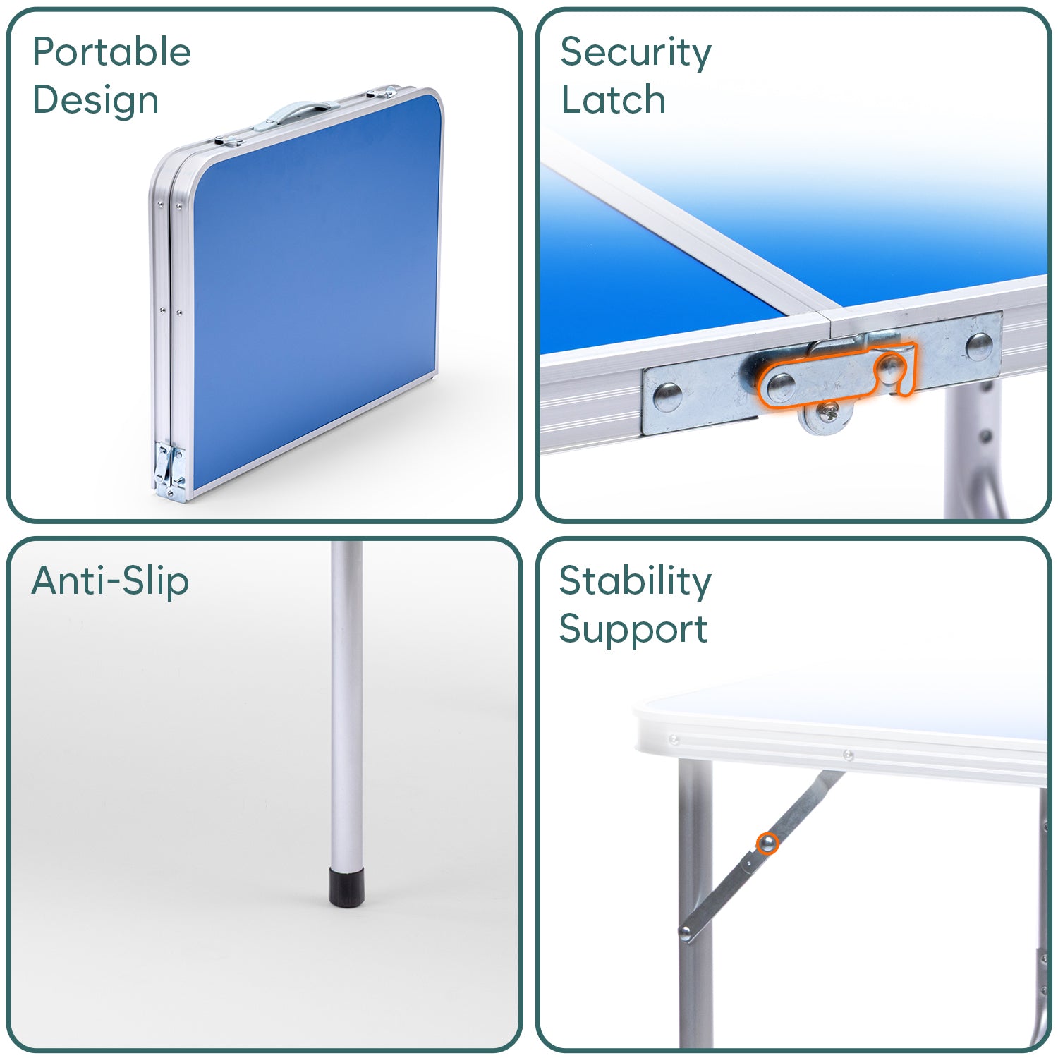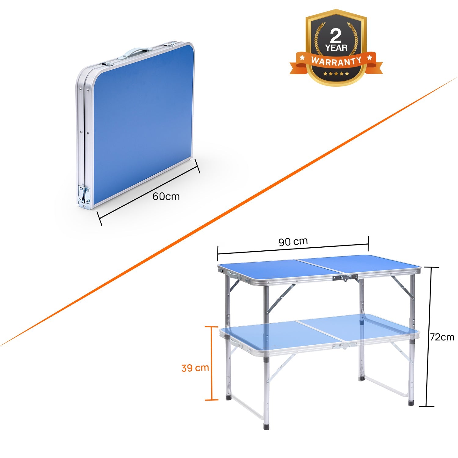 3 Feet Multipurpose Aluminium Folding Camping Table with Round Pipe Legs | Best for Balcony, Garden, Hiking, Picnic, Outdoor & Indoor Use (Blue)